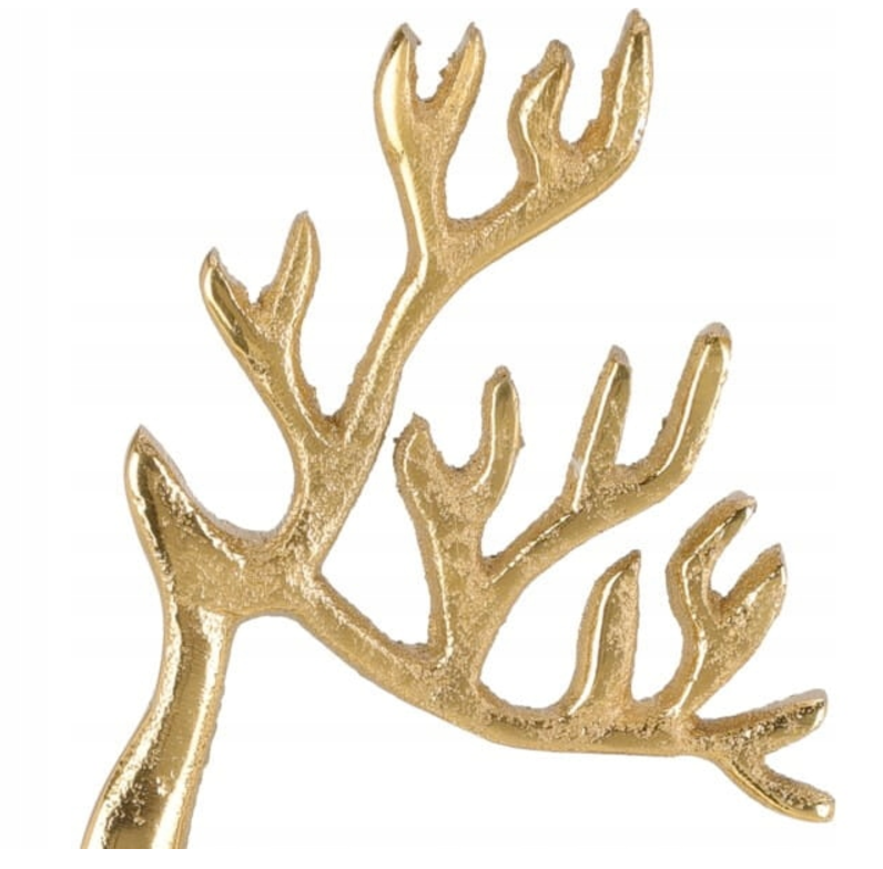 Suteikite savo namams klasės ir šventinio žavesio su šia elegantiška auksinės spalvos metaline elnio figūrėle su ragais. Tai stilinga 20 cm aukščio dekoracija, ideali Kalėdų interjerui, pridėsianti prabangos ir išskirtinio charakterio. 🎄