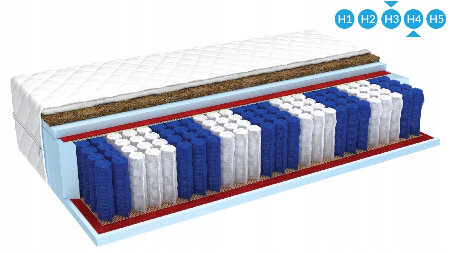 - Natūralus veltinis: atskiria spyruoklių sluoksnį nuo putų sluoksnio.