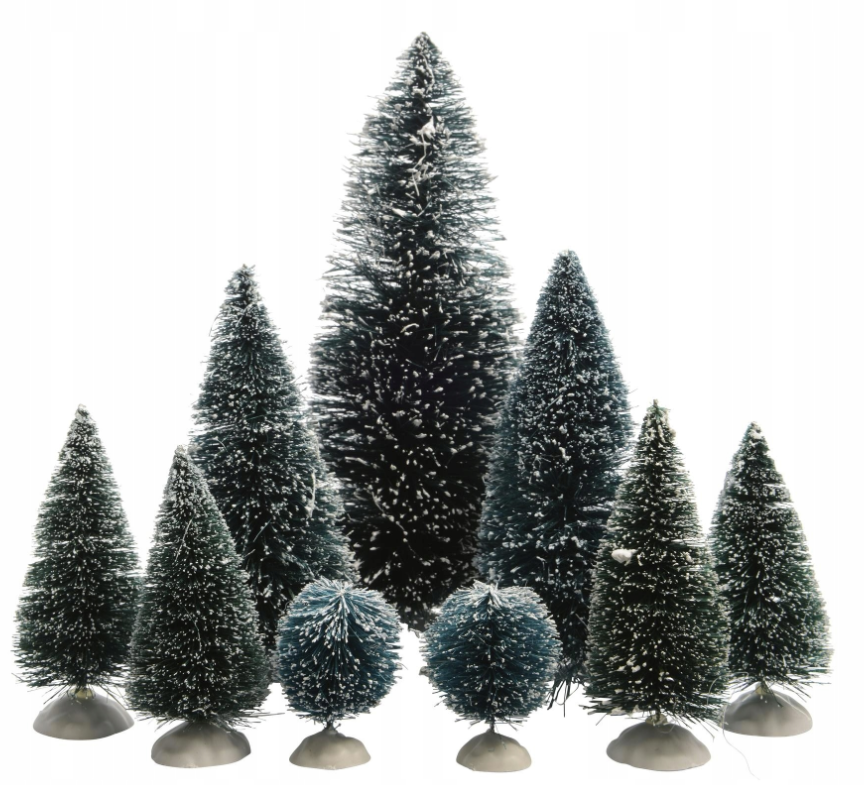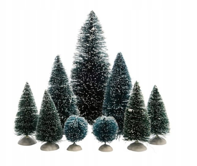 Mažų Kalėdų eglučių rinkinys gimimo scenai (9 vnt)